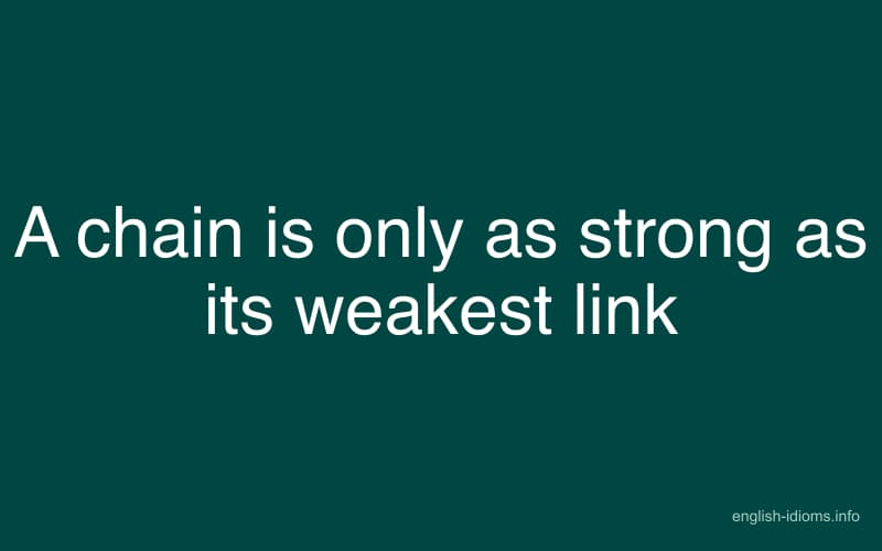L'expression « une chaîne n'est aussi solide que son maillon le plus faible » signifie que la force globale ou l'efficacité d'un groupe, d'un système ou d'une organisation dépend de la force ou de la compétence des membres individuels.